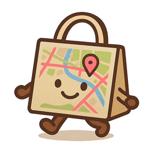 紙の地図を手に持つ手間をなくし、両手を自由に使える地図プリントトート。地図は上下反転印刷で、肩にかけたままでも見やすく確認がスムーズです。