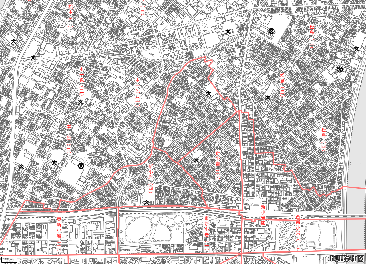 地図の内容は国土地理院が作成した時点の情報を反映しており、実際の現況とは異なる場合があります。現在は存在しない建物や道路、新たに整備された施設などが含まれることがありますので、あらかじめご了承ください。