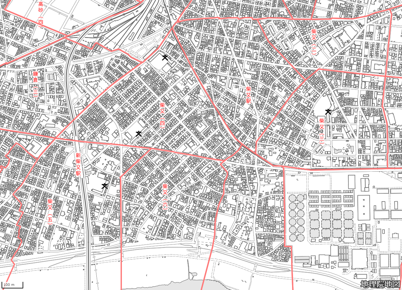 地図の内容は国土地理院が作成した時点の情報を反映しており、実際の現況とは異なる場合があります。現在は存在しない建物や道路、新たに整備された施設などが含まれることがありますので、あらかじめご了承ください。