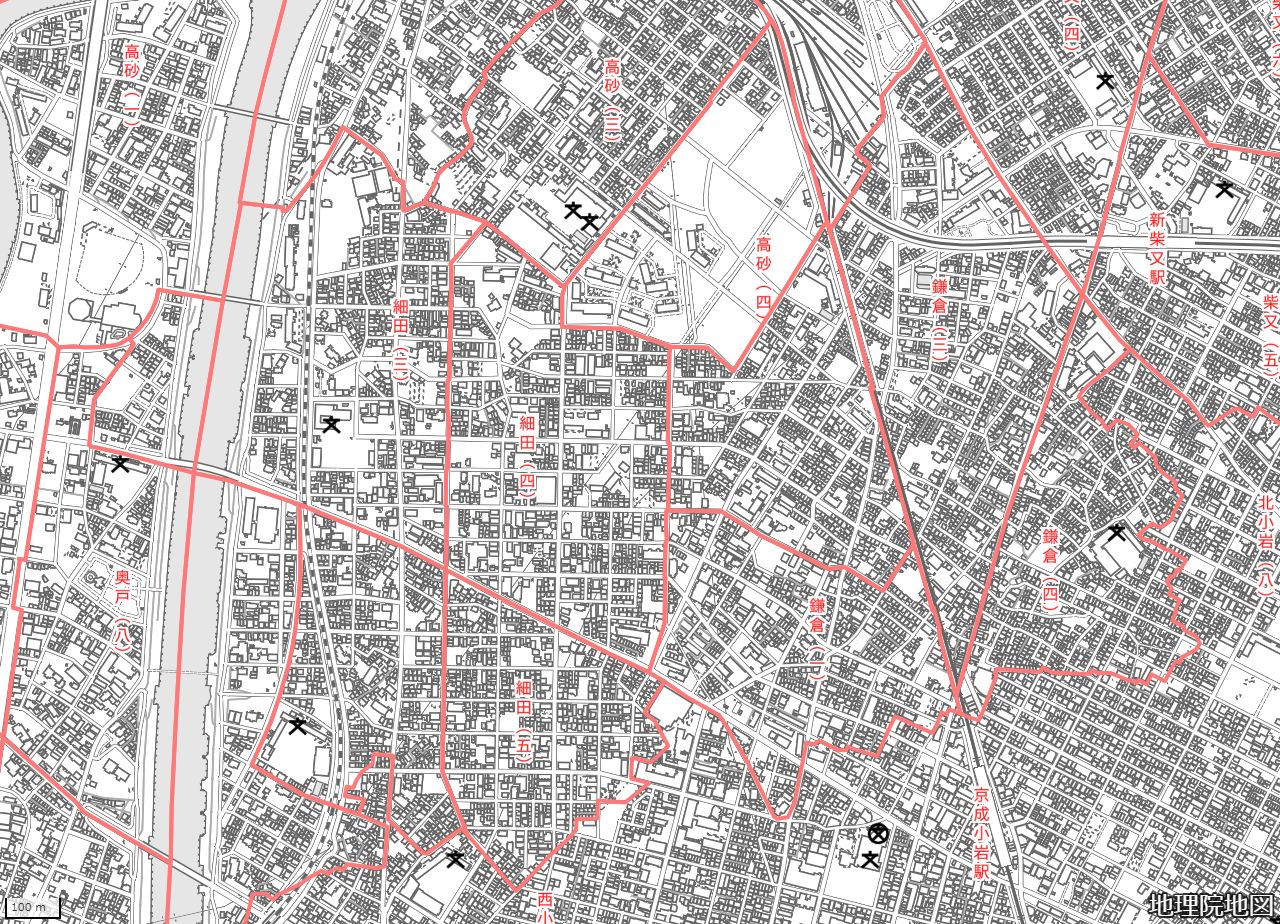 地図の内容は国土地理院が作成した時点の情報を反映しており、実際の現況とは異なる場合があります。現在は存在しない建物や道路、新たに整備された施設などが含まれることがありますので、あらかじめご了承ください。
