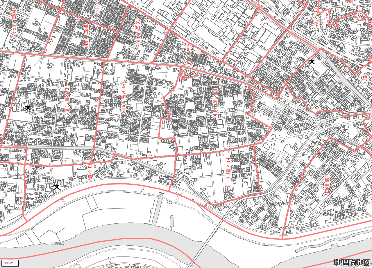 地図の内容は国土地理院が作成した時点の情報を反映しており、実際の現況とは異なる場合があります。現在は存在しない建物や道路、新たに整備された施設などが含まれることがありますので、あらかじめご了承ください。