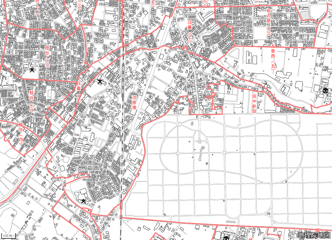 地図の内容は国土地理院が作成した時点の情報を反映しており、実際の現況とは異なる場合があります。現在は存在しない建物や道路、新たに整備された施設などが含まれることがありますので、あらかじめご了承ください。