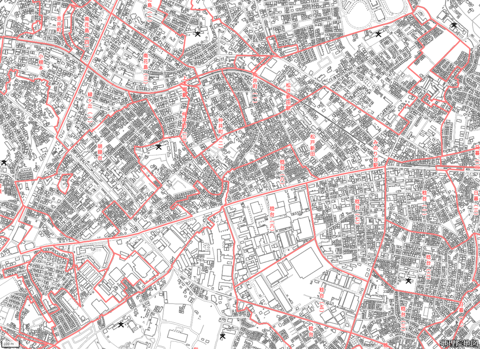 地図の内容は国土地理院が作成した時点の情報を反映しており、実際の現況とは異なる場合があります。現在は存在しない建物や道路、新たに整備された施設などが含まれることがありますので、あらかじめご了承ください。