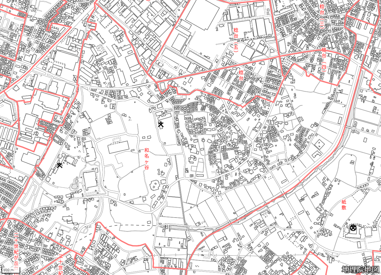 地図の内容は国土地理院が作成した時点の情報を反映しており、実際の現況とは異なる場合があります。現在は存在しない建物や道路、新たに整備された施設などが含まれることがありますので、あらかじめご了承ください。