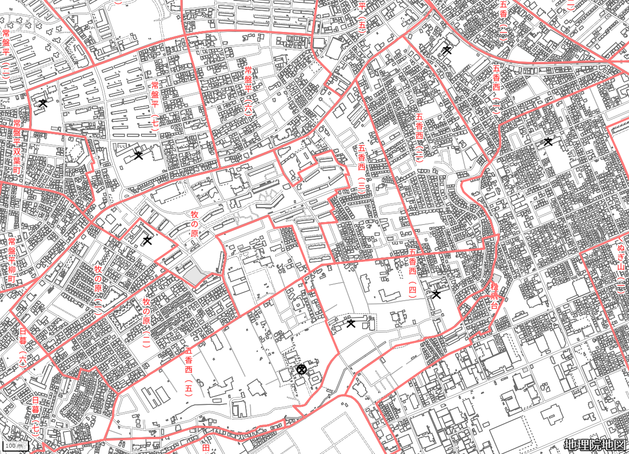 地図の内容は国土地理院が作成した時点の情報を反映しており、実際の現況とは異なる場合があります。現在は存在しない建物や道路、新たに整備された施設などが含まれることがありますので、あらかじめご了承ください。