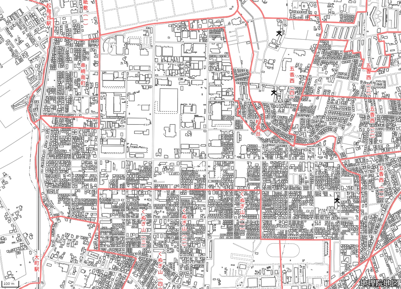 地図の内容は国土地理院が作成した時点の情報を反映しており、実際の現況とは異なる場合があります。現在は存在しない建物や道路、新たに整備された施設などが含まれることがありますので、あらかじめご了承ください。