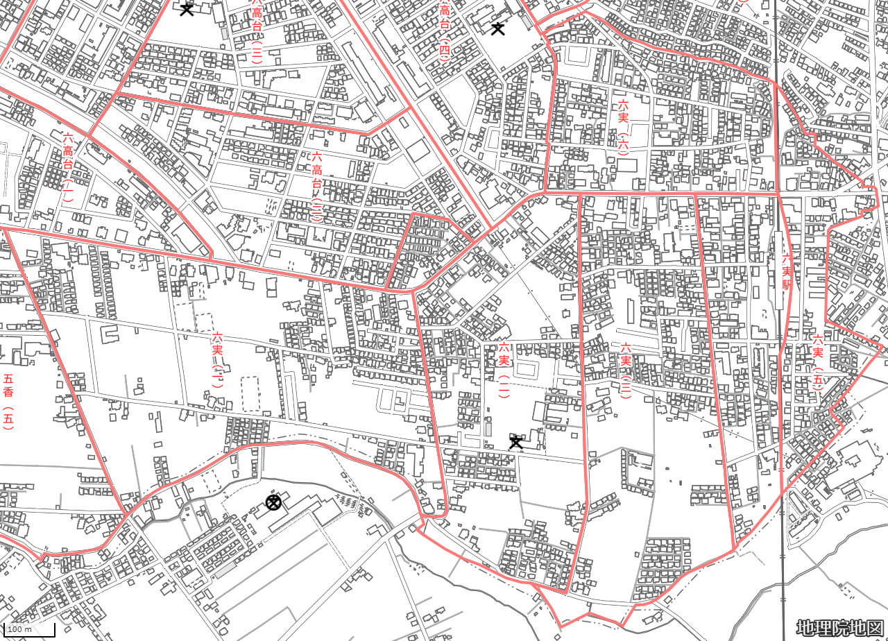 地図の内容は国土地理院が作成した時点の情報を反映しており、実際の現況とは異なる場合があります。現在は存在しない建物や道路、新たに整備された施設などが含まれることがありますので、あらかじめご了承ください。