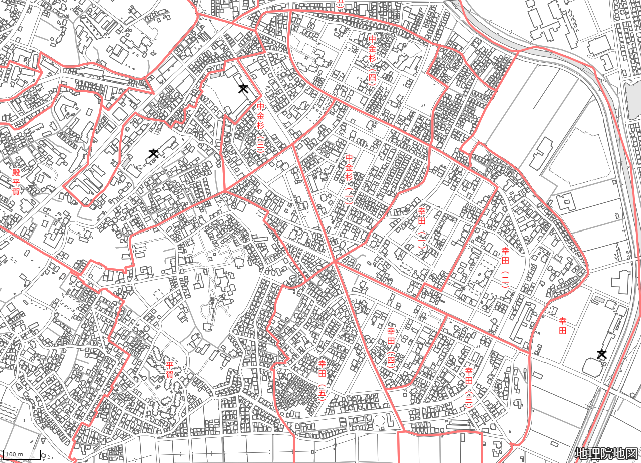 地図の内容は国土地理院が作成した時点の情報を反映しており、実際の現況とは異なる場合があります。現在は存在しない建物や道路、新たに整備された施設などが含まれることがありますので、あらかじめご了承ください。