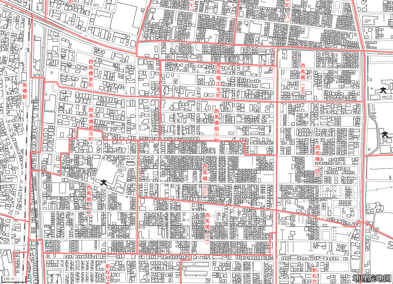 地図の内容は国土地理院が作成した時点の情報を反映しており、実際の現況とは異なる場合があります。現在は存在しない建物や道路、新たに整備された施設などが含まれることがありますので、あらかじめご了承ください。