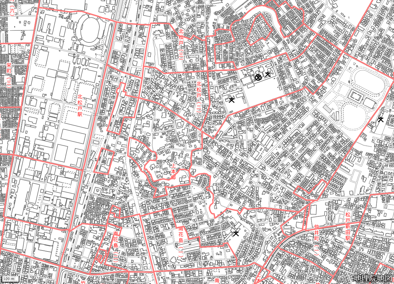 地図の内容は国土地理院が作成した時点の情報を反映しており、実際の現況とは異なる場合があります。現在は存在しない建物や道路、新たに整備された施設などが含まれることがありますので、あらかじめご了承ください。