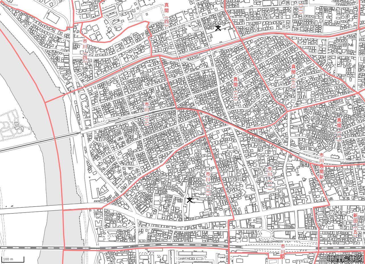 境界付近に建物が存在しない場合や、河川や海岸がある場合には、地図全体の視認性を高める為に一部境界を省略している場合がございます。