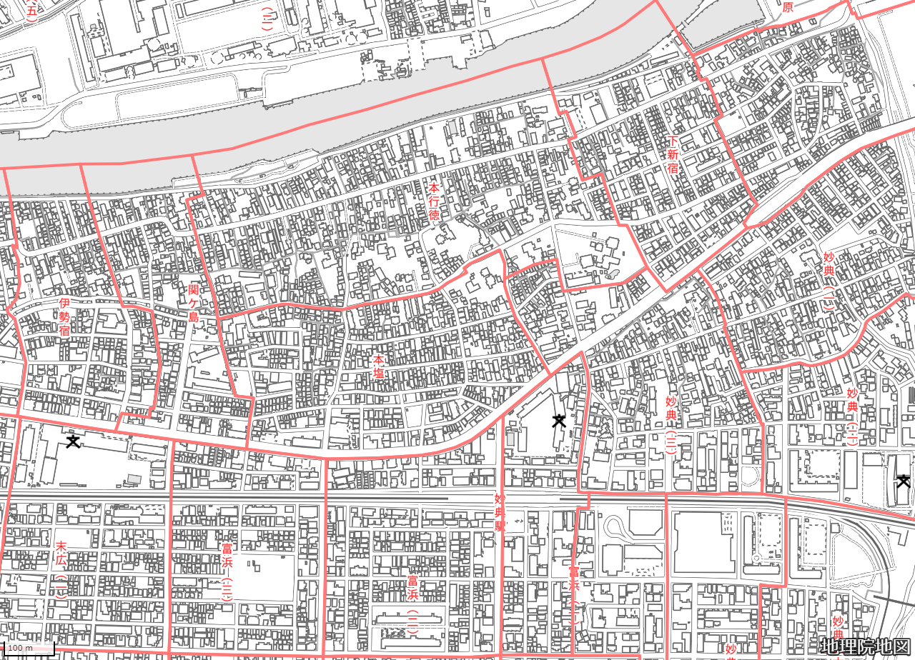 地図の内容は国土地理院が作成した時点の情報を反映しており、実際の現況とは異なる場合があります。現在は存在しない建物や道路、新たに整備された施設などが含まれることがありますので、あらかじめご了承ください。
