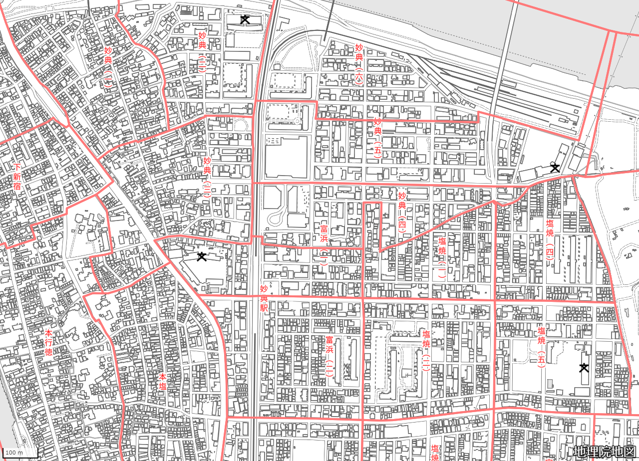 地図の内容は国土地理院が作成した時点の情報を反映しており、実際の現況とは異なる場合があります。現在は存在しない建物や道路、新たに整備された施設などが含まれることがありますので、あらかじめご了承ください。
