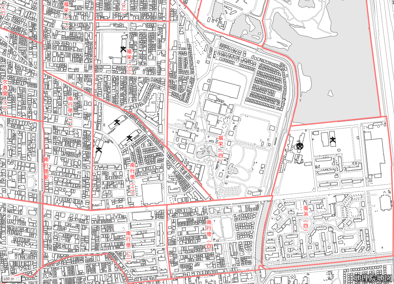 地図の内容は国土地理院が作成した時点の情報を反映しており、実際の現況とは異なる場合があります。現在は存在しない建物や道路、新たに整備された施設などが含まれることがありますので、あらかじめご了承ください。