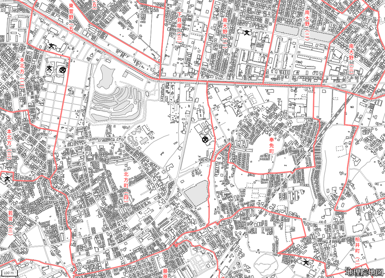 地図の内容は国土地理院が作成した時点の情報を反映しており、実際の現況とは異なる場合があります。現在は存在しない建物や道路、新たに整備された施設などが含まれることがありますので、あらかじめご了承ください。