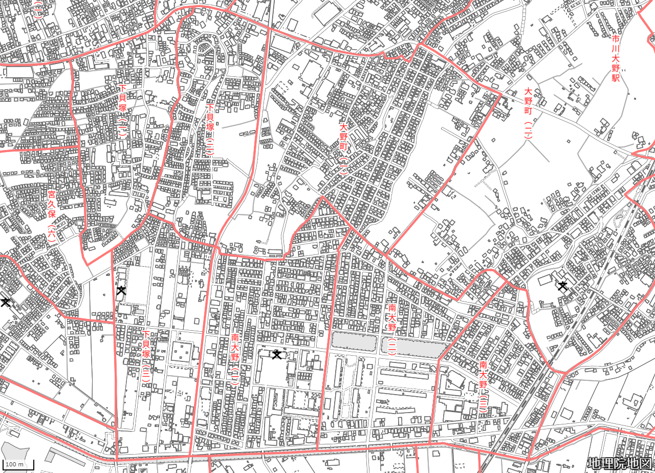 地図の内容は国土地理院が作成した時点の情報を反映しており、実際の現況とは異なる場合があります。現在は存在しない建物や道路、新たに整備された施設などが含まれることがありますので、あらかじめご了承ください。
