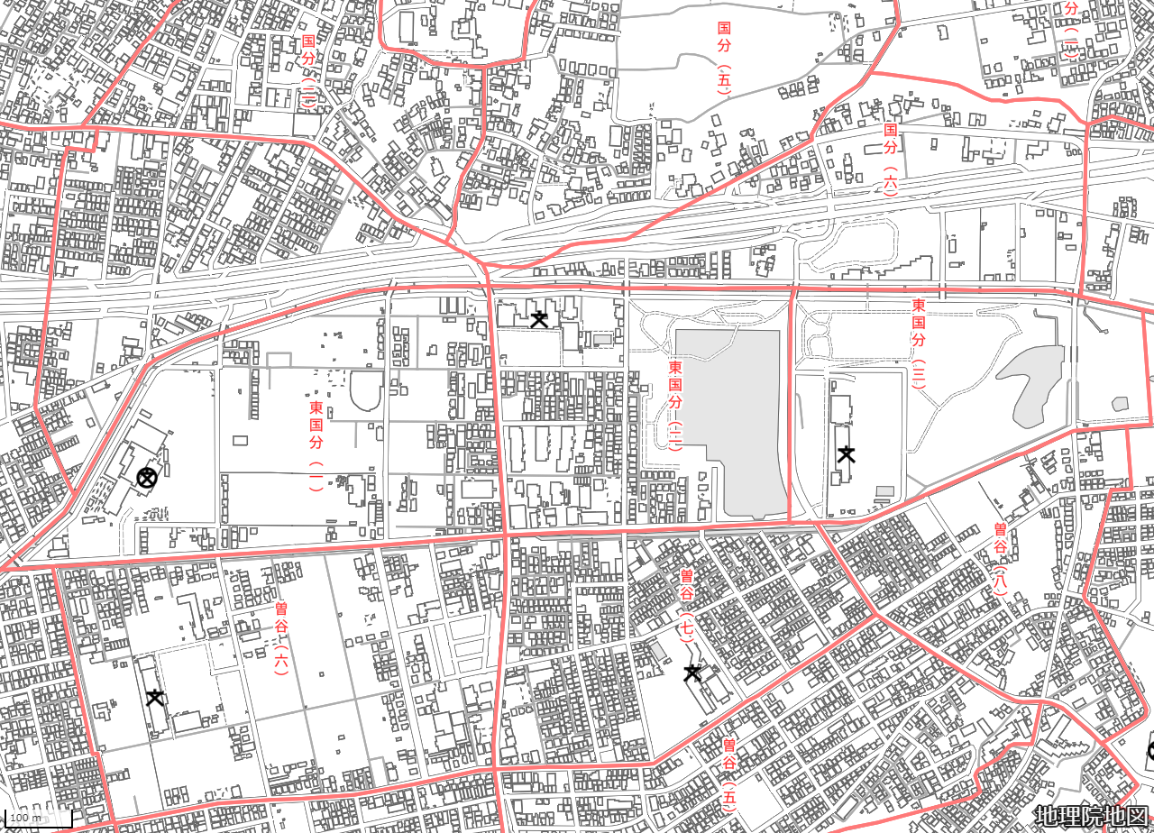 地図の内容は国土地理院が作成した時点の情報を反映しており、実際の現況とは異なる場合があります。現在は存在しない建物や道路、新たに整備された施設などが含まれることがありますので、あらかじめご了承ください。
