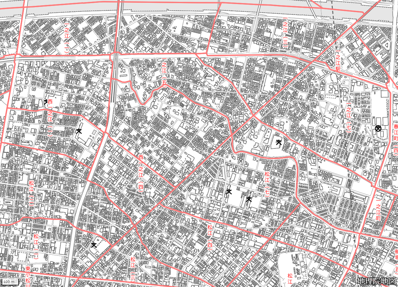 地図の内容は国土地理院が作成した時点の情報を反映しており、実際の現況とは異なる場合があります。現在は存在しない建物や道路、新たに整備された施設などが含まれることがありますので、あらかじめご了承ください。