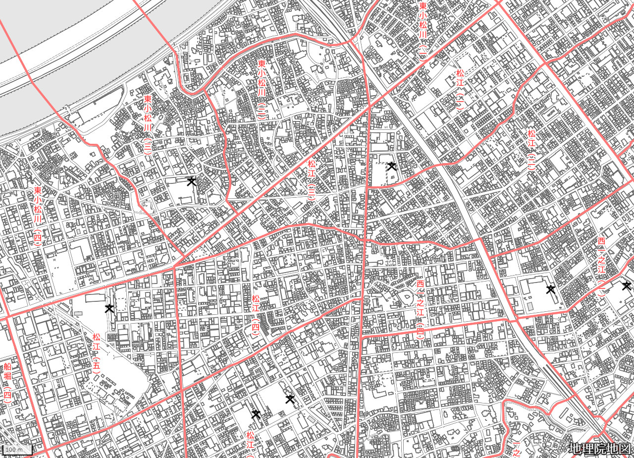 地図の内容は国土地理院が作成した時点の情報を反映しており、実際の現況とは異なる場合があります。現在は存在しない建物や道路、新たに整備された施設などが含まれることがありますので、あらかじめご了承ください。
