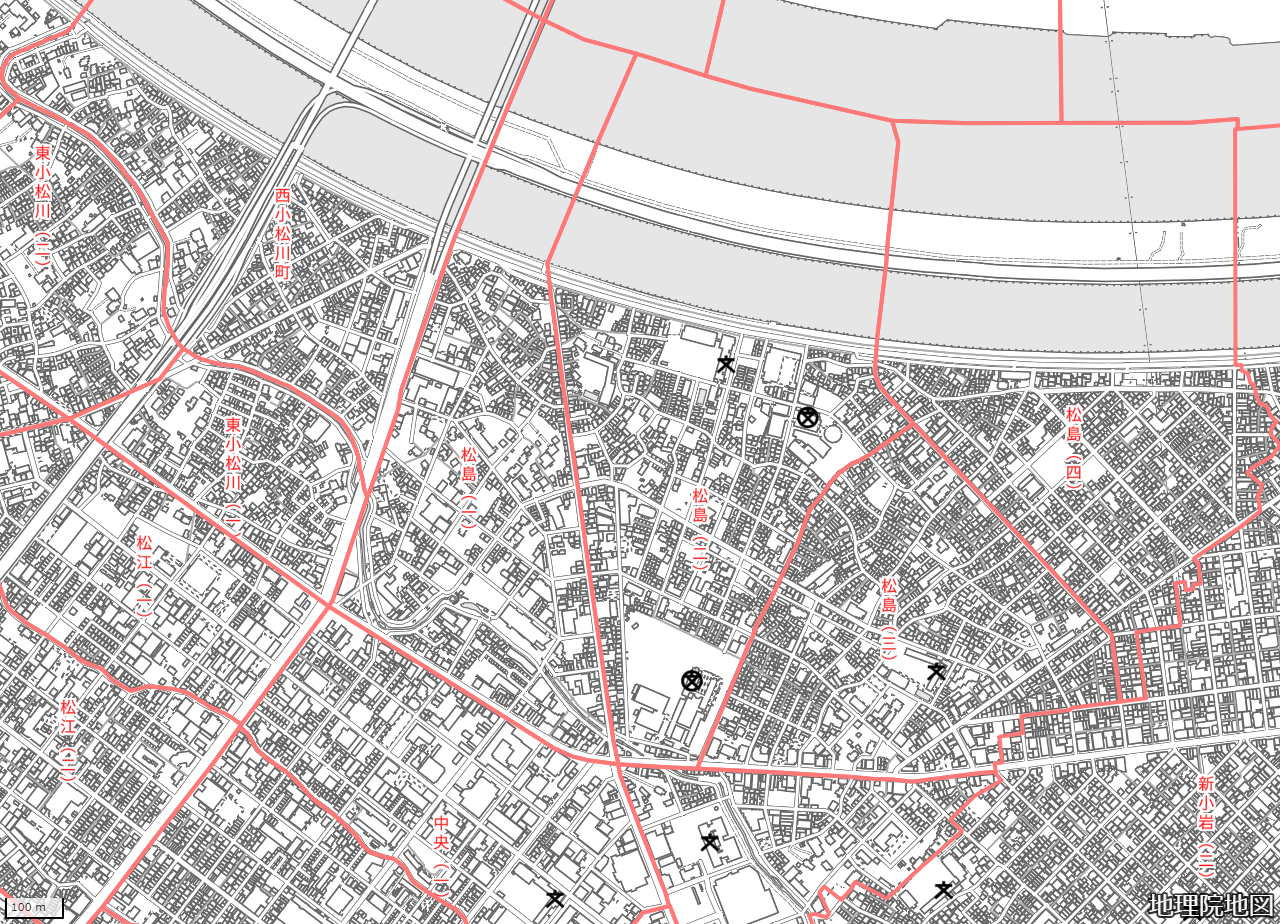 地図の内容は国土地理院が作成した時点の情報を反映しており、実際の現況とは異なる場合があります。現在は存在しない建物や道路、新たに整備された施設などが含まれることがありますので、あらかじめご了承ください。