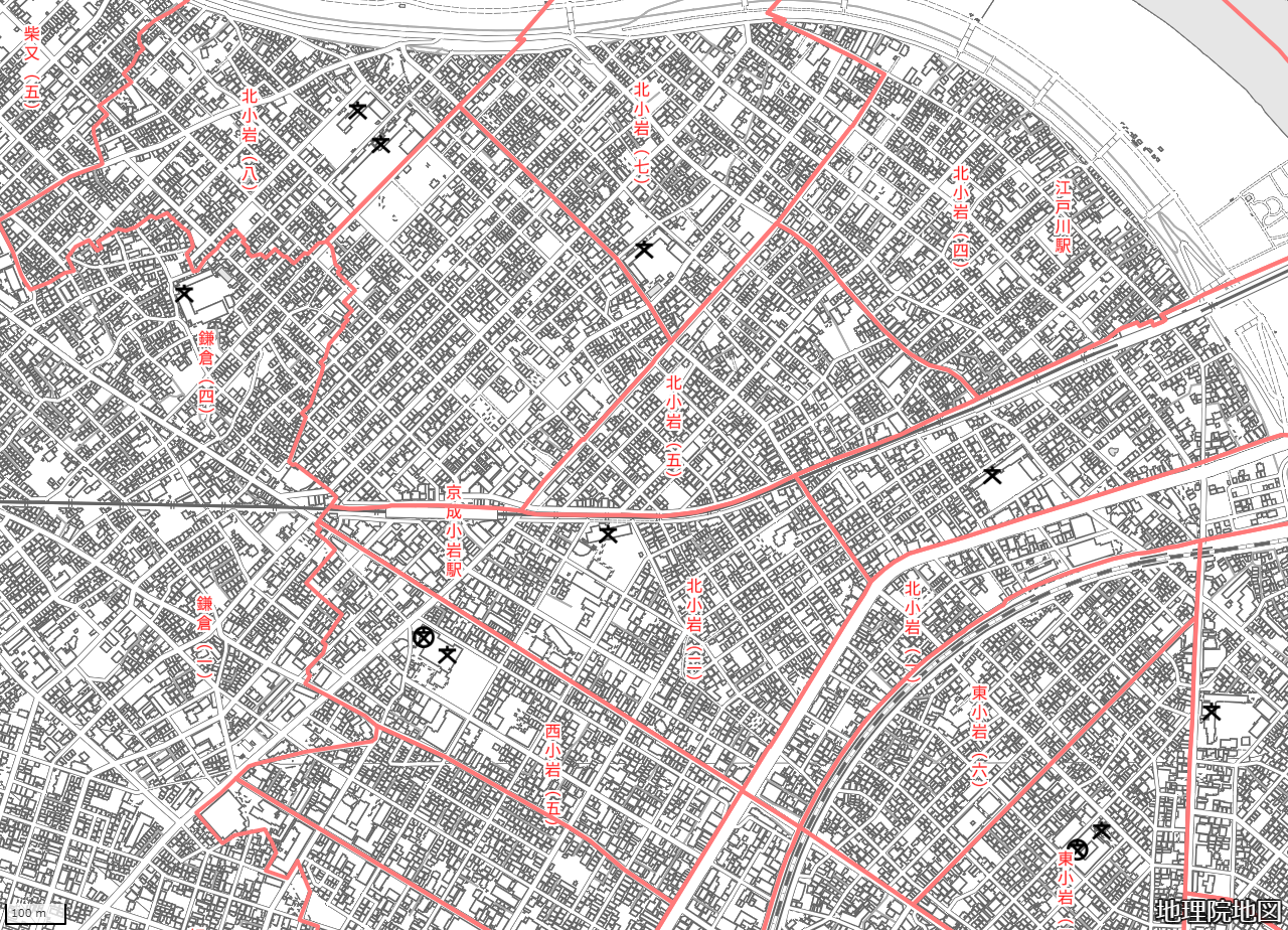 地図の内容は国土地理院が作成した時点の情報を反映しており、実際の現況とは異なる場合があります。現在は存在しない建物や道路、新たに整備された施設などが含まれることがありますので、あらかじめご了承ください。
