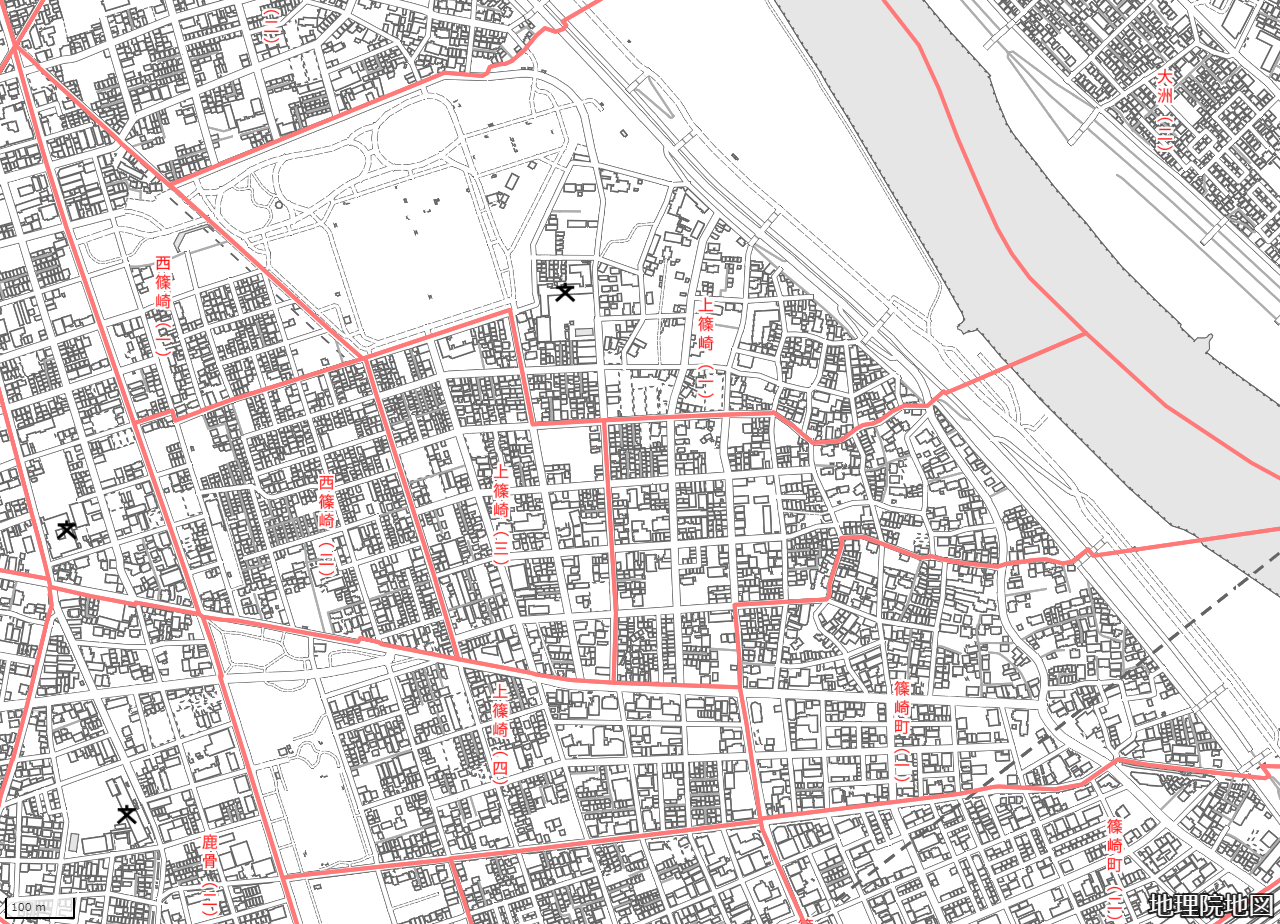 地図の内容は国土地理院が作成した時点の情報を反映しており、実際の現況とは異なる場合があります。現在は存在しない建物や道路、新たに整備された施設などが含まれることがありますので、あらかじめご了承ください。