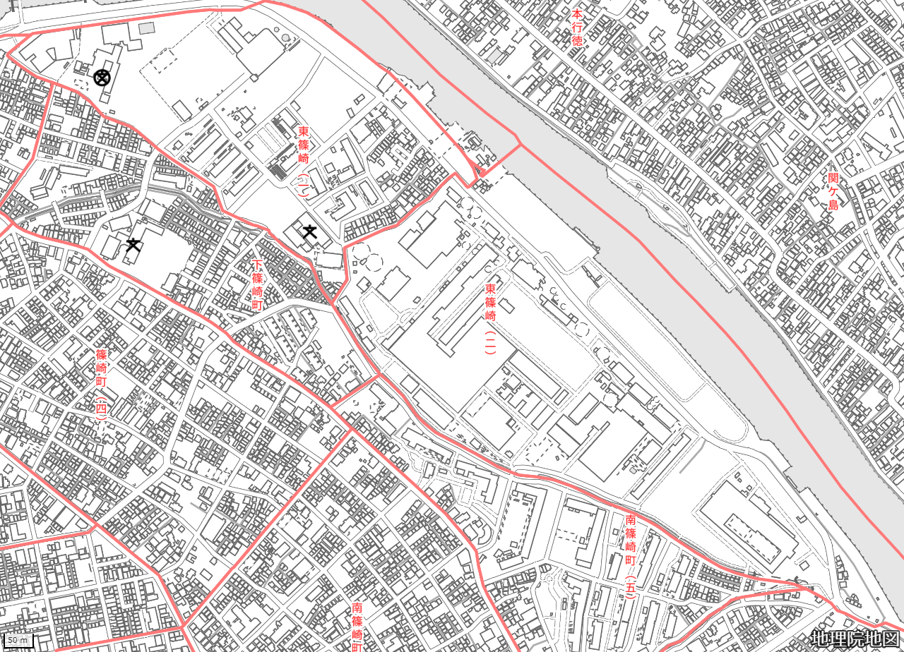 地図の内容は国土地理院が作成した時点の情報を反映しており、実際の現況とは異なる場合があります。現在は存在しない建物や道路、新たに整備された施設などが含まれることがありますので、あらかじめご了承ください。