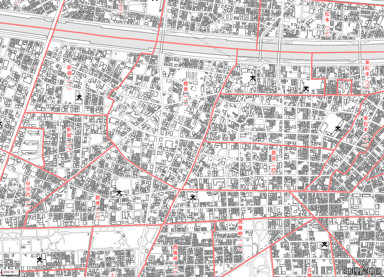 地図の内容は国土地理院が作成した時点の情報を反映しており、実際の現況とは異なる場合があります。現在は存在しない建物や道路、新たに整備された施設などが含まれることがありますので、あらかじめご了承ください。