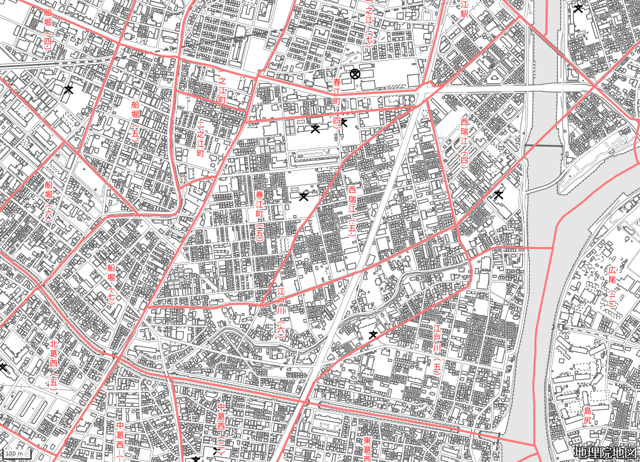 地図の内容は国土地理院が作成した時点の情報を反映しており、実際の現況とは異なる場合があります。現在は存在しない建物や道路、新たに整備された施設などが含まれることがありますので、あらかじめご了承ください。