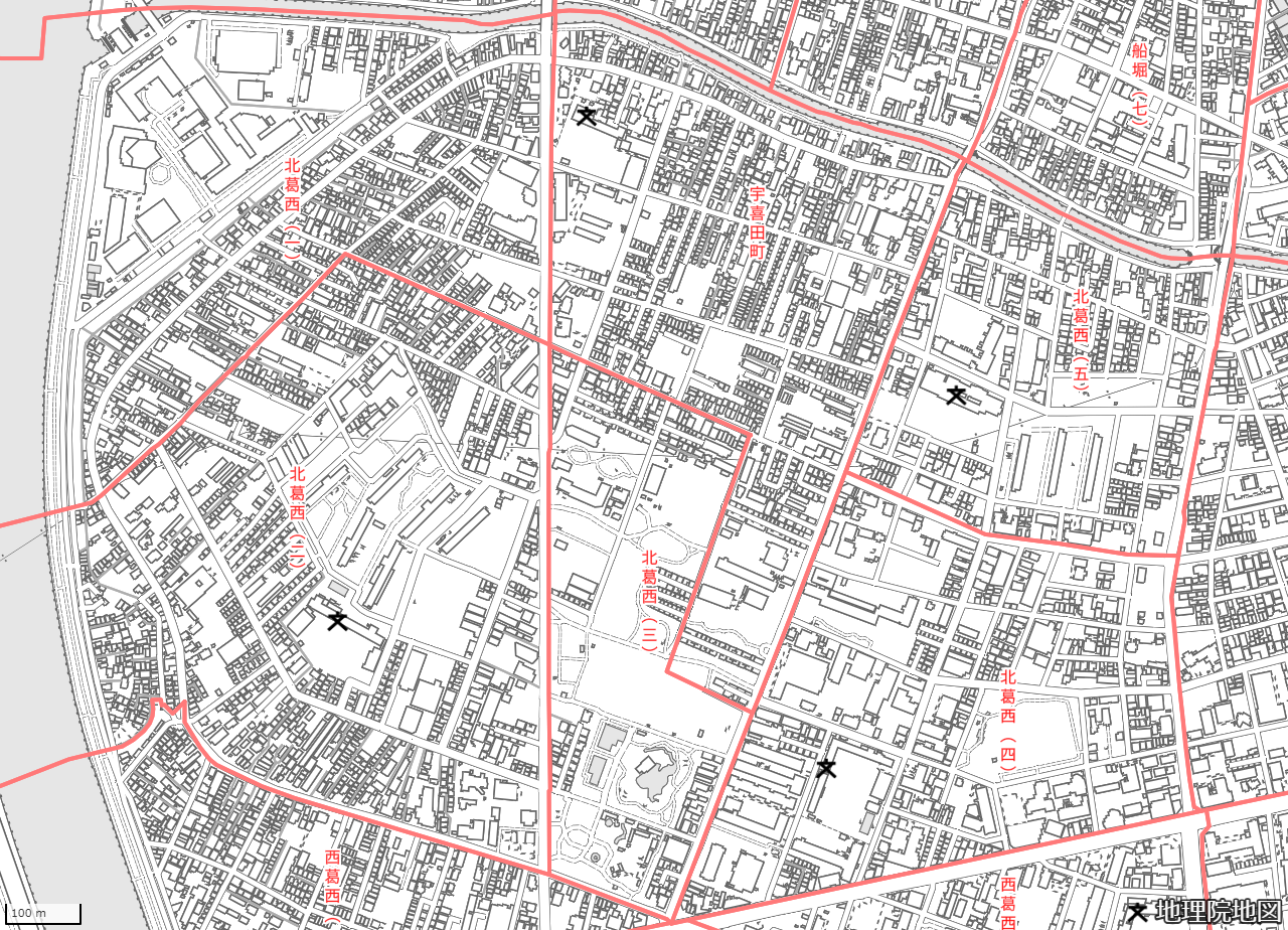 地図の内容は国土地理院が作成した時点の情報を反映しており、実際の現況とは異なる場合があります。現在は存在しない建物や道路、新たに整備された施設などが含まれることがありますので、あらかじめご了承ください。