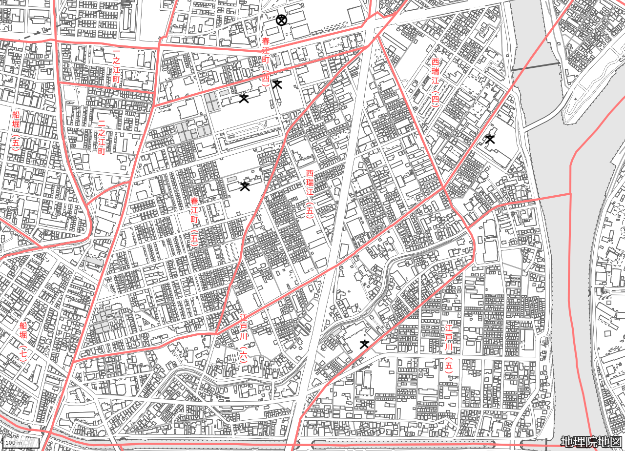 地図の内容は国土地理院が作成した時点の情報を反映しており、実際の現況とは異なる場合があります。現在は存在しない建物や道路、新たに整備された施設などが含まれることがありますので、あらかじめご了承ください。