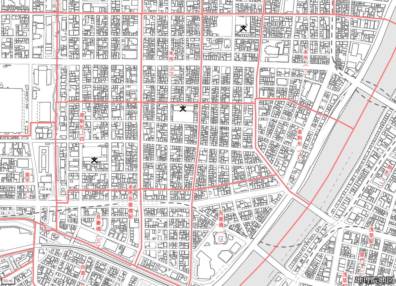地図の内容は国土地理院が作成した時点の情報を反映しており、実際の現況とは異なる場合があります。現在は存在しない建物や道路、新たに整備された施設などが含まれることがありますので、あらかじめご了承ください。