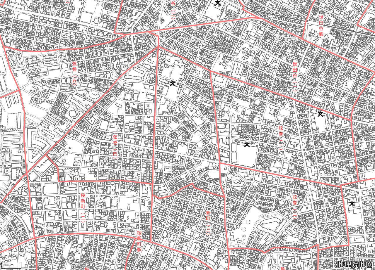 地図の内容は国土地理院が作成した時点の情報を反映しており、実際の現況とは異なる場合があります。現在は存在しない建物や道路、新たに整備された施設などが含まれることがありますので、あらかじめご了承ください。