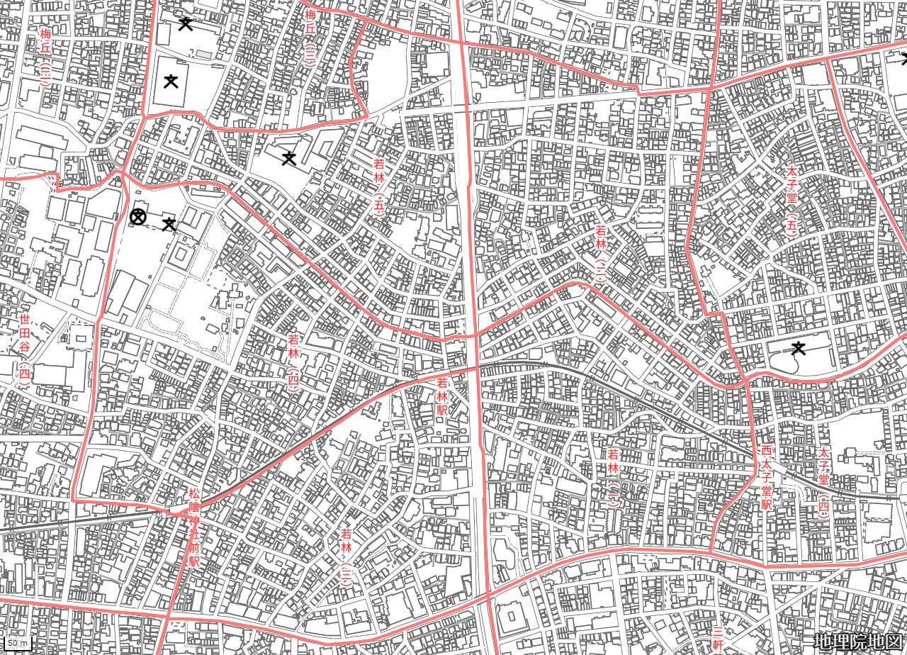 地図の内容は国土地理院が作成した時点の情報を反映しており、実際の現況とは異なる場合があります。現在は存在しない建物や道路、新たに整備された施設などが含まれることがありますので、あらかじめご了承ください。