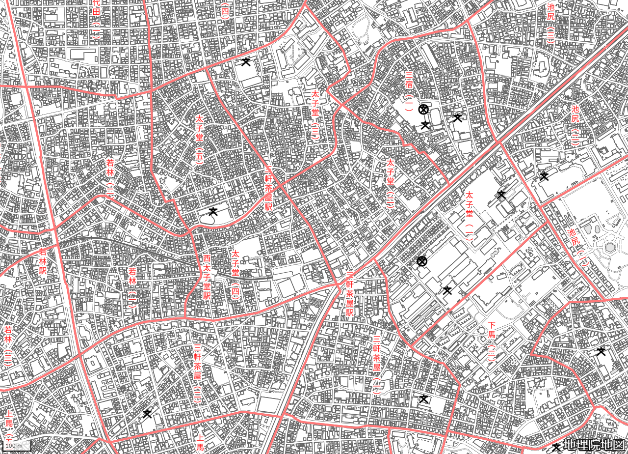 地図の内容は国土地理院が作成した時点の情報を反映しており、実際の現況とは異なる場合があります。現在は存在しない建物や道路、新たに整備された施設などが含まれることがありますので、あらかじめご了承ください。