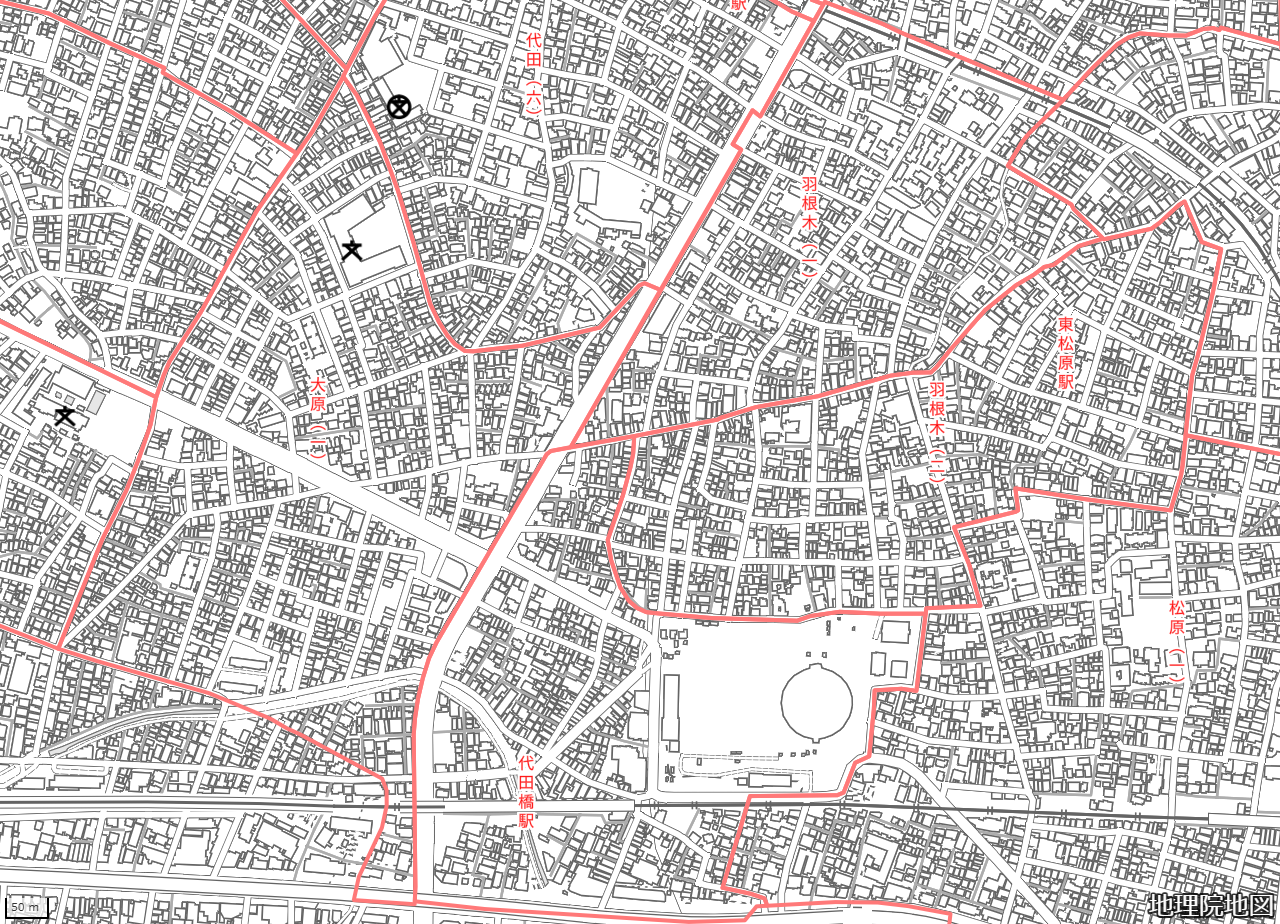 地図の内容は国土地理院が作成した時点の情報を反映しており、実際の現況とは異なる場合があります。現在は存在しない建物や道路、新たに整備された施設などが含まれることがありますので、あらかじめご了承ください。