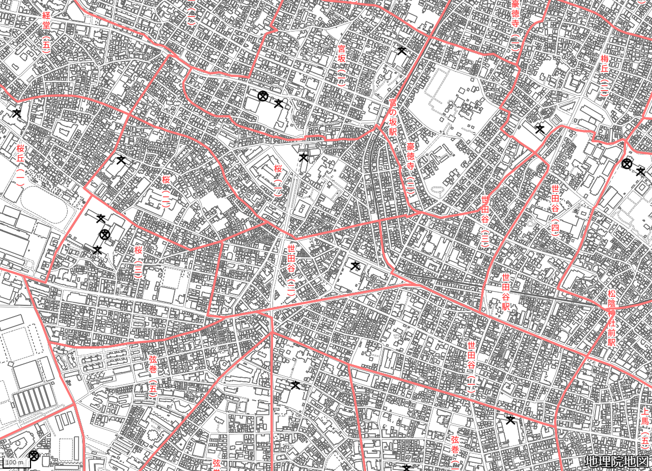 地図の内容は国土地理院が作成した時点の情報を反映しており、実際の現況とは異なる場合があります。現在は存在しない建物や道路、新たに整備された施設などが含まれることがありますので、あらかじめご了承ください。