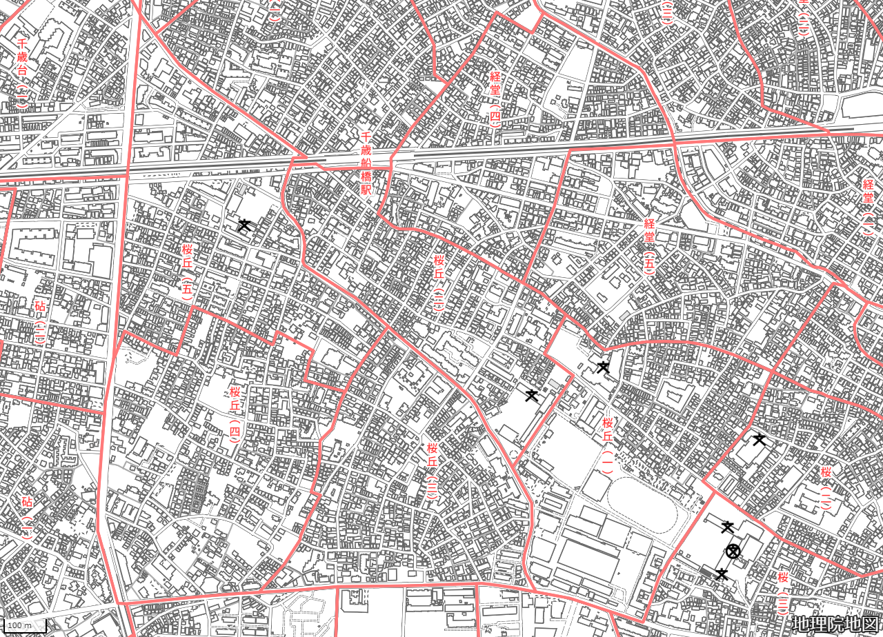 地図の内容は国土地理院が作成した時点の情報を反映しており、実際の現況とは異なる場合があります。現在は存在しない建物や道路、新たに整備された施設などが含まれることがありますので、あらかじめご了承ください。