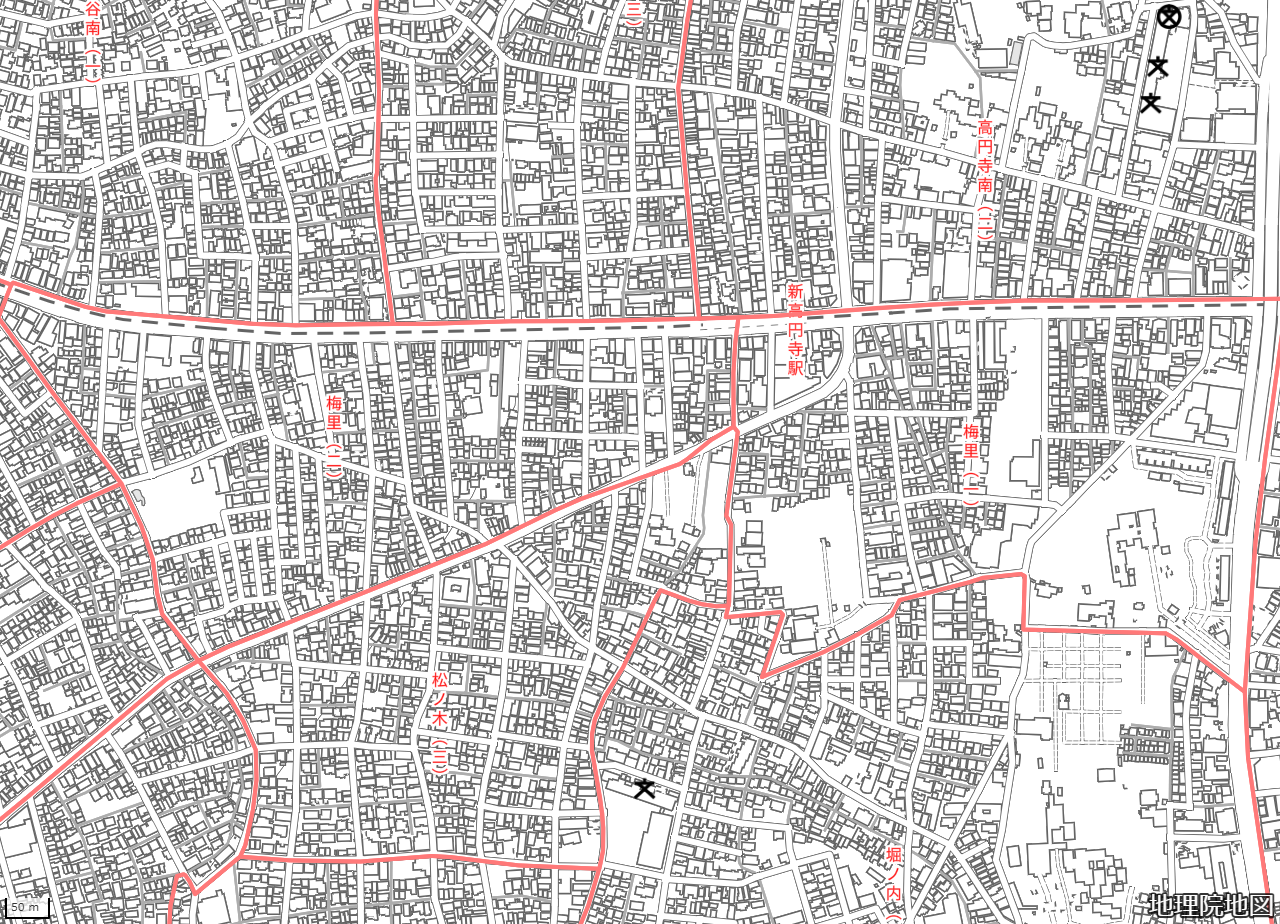 地図の内容は国土地理院が作成した時点の情報を反映しており、実際の現況とは異なる場合があります。現在は存在しない建物や道路、新たに整備された施設などが含まれることがありますので、あらかじめご了承ください。