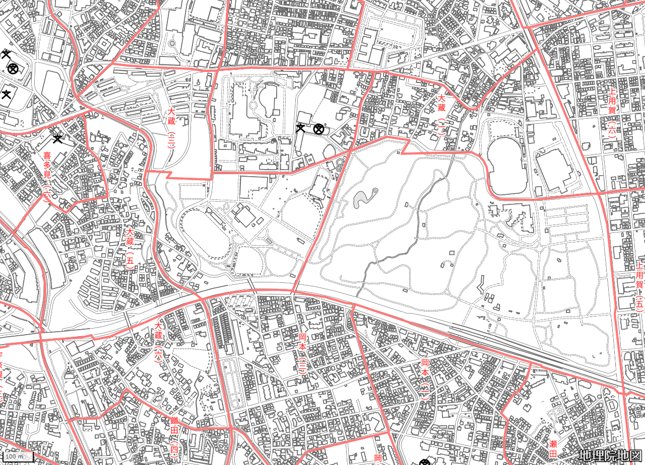 地図の内容は国土地理院が作成した時点の情報を反映しており、実際の現況とは異なる場合があります。現在は存在しない建物や道路、新たに整備された施設などが含まれることがありますので、あらかじめご了承ください。