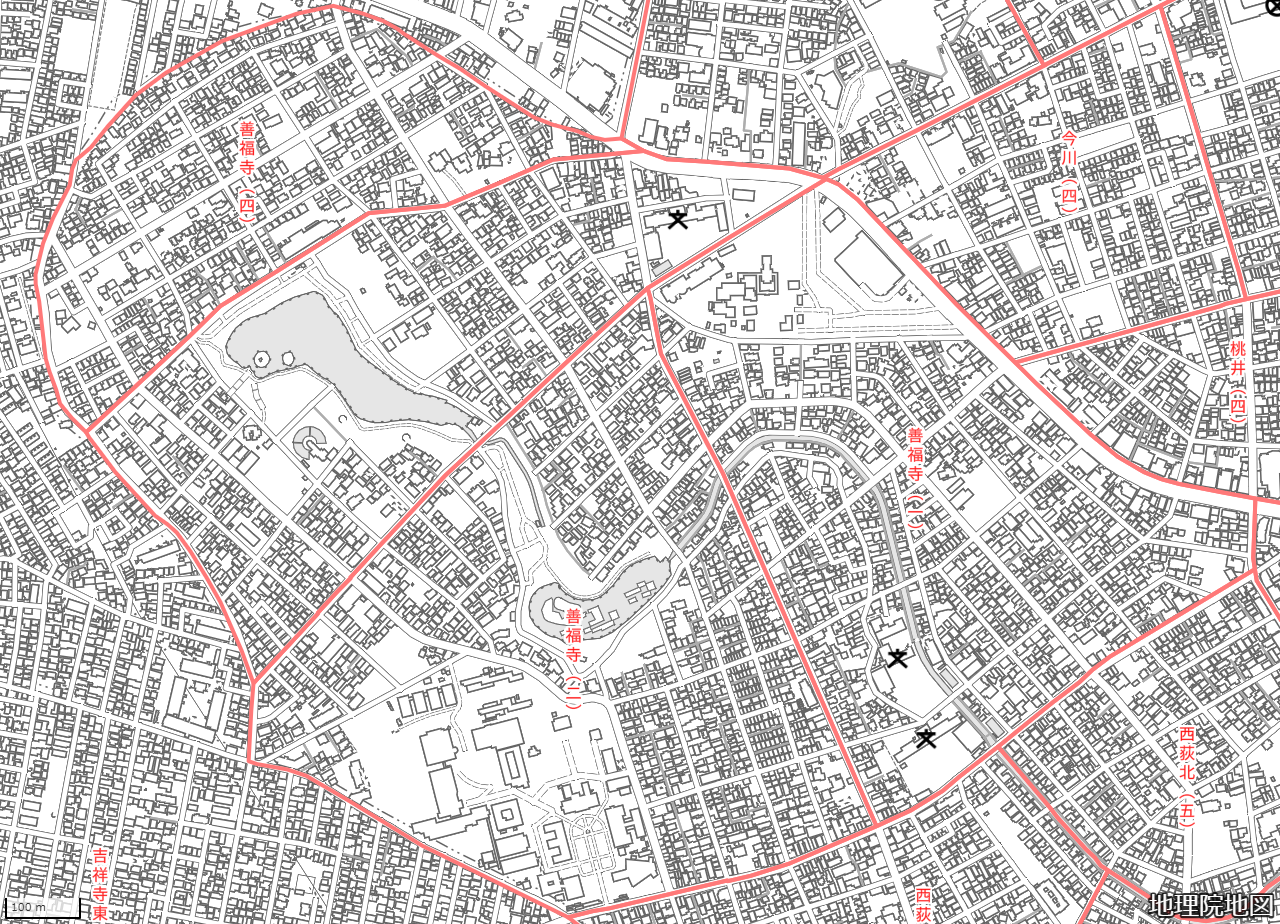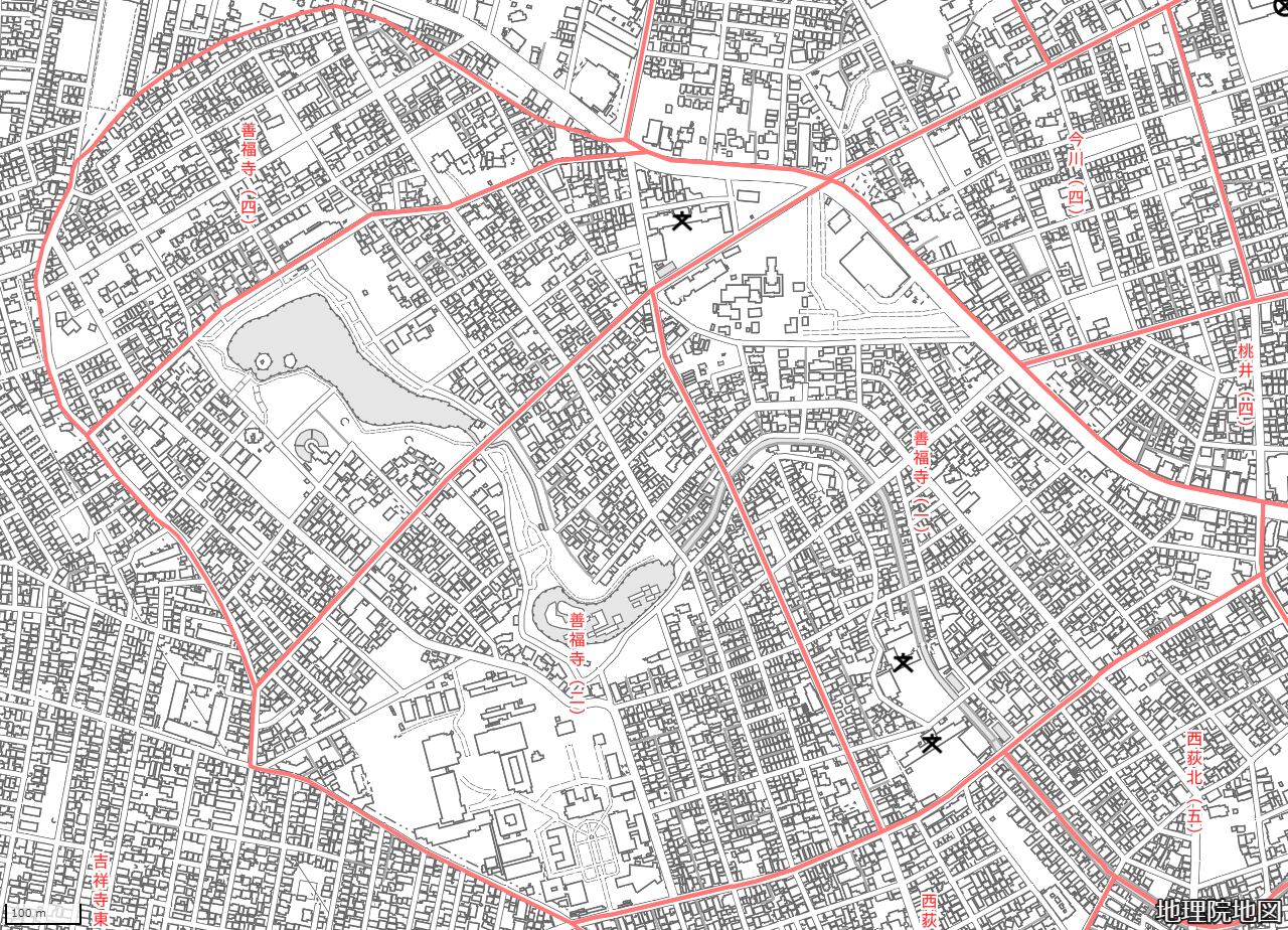 地図の内容は国土地理院が作成した時点の情報を反映しており、実際の現況とは異なる場合があります。現在は存在しない建物や道路、新たに整備された施設などが含まれることがありますので、あらかじめご了承ください。