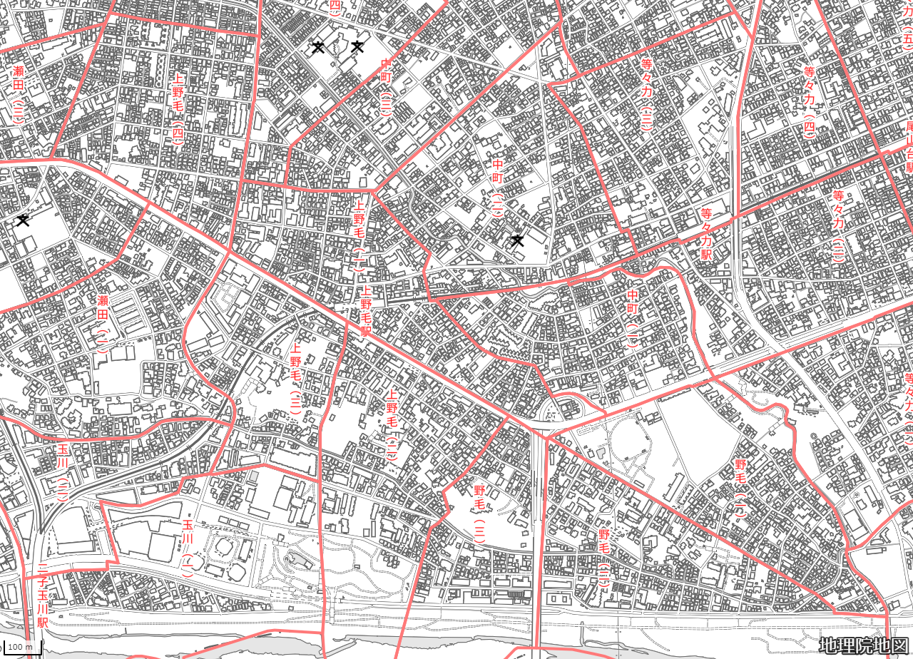 地図の内容は国土地理院が作成した時点の情報を反映しており、実際の現況とは異なる場合があります。現在は存在しない建物や道路、新たに整備された施設などが含まれることがありますので、あらかじめご了承ください。