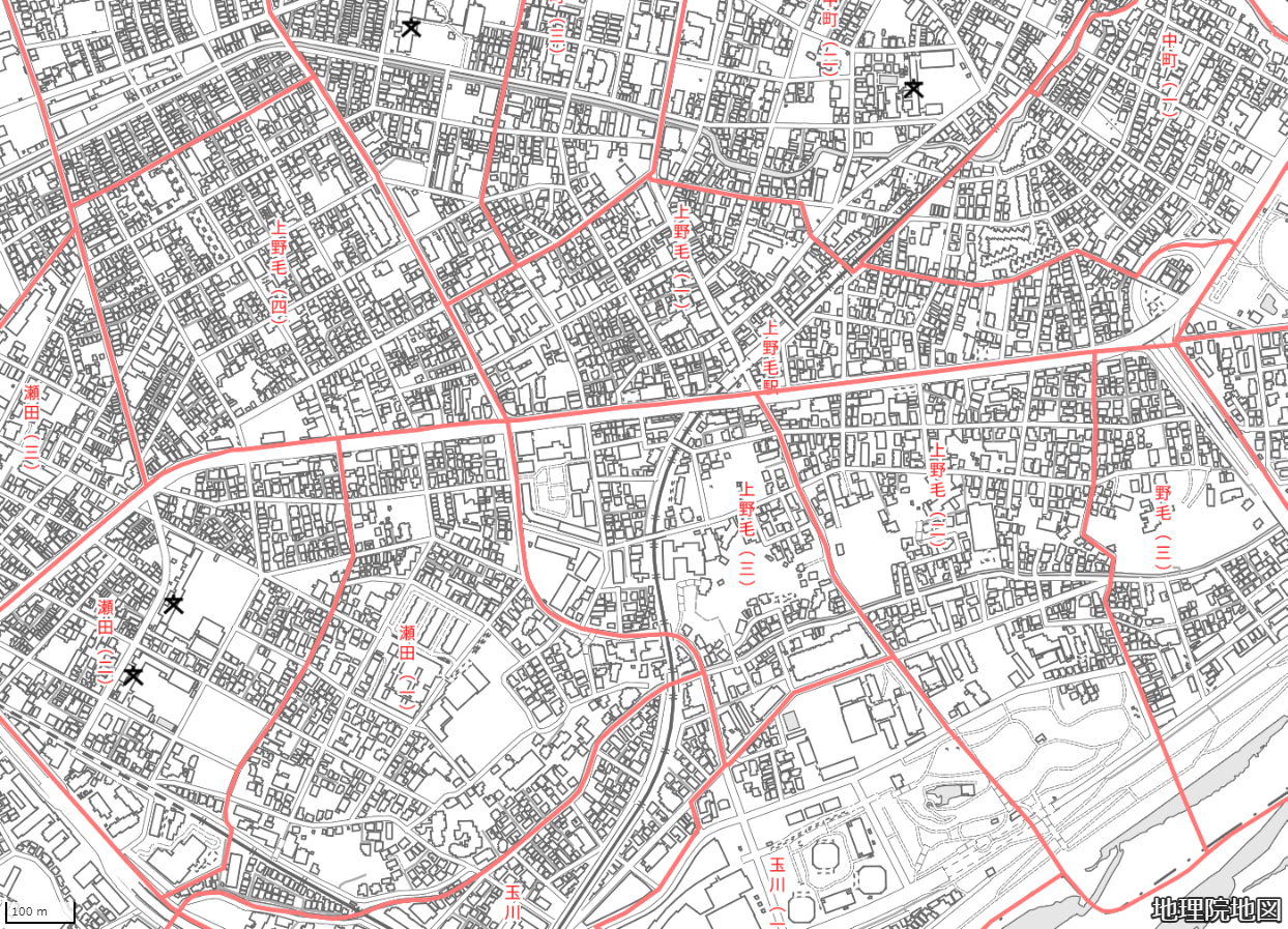 地図の内容は国土地理院が作成した時点の情報を反映しており、実際の現況とは異なる場合があります。現在は存在しない建物や道路、新たに整備された施設などが含まれることがありますので、あらかじめご了承ください。