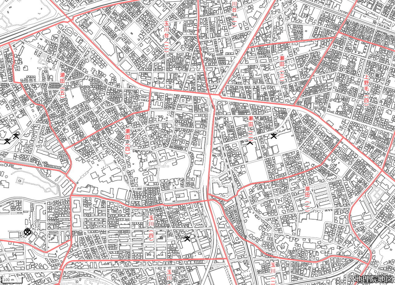 地図の内容は国土地理院が作成した時点の情報を反映しており、実際の現況とは異なる場合があります。現在は存在しない建物や道路、新たに整備された施設などが含まれることがありますので、あらかじめご了承ください。