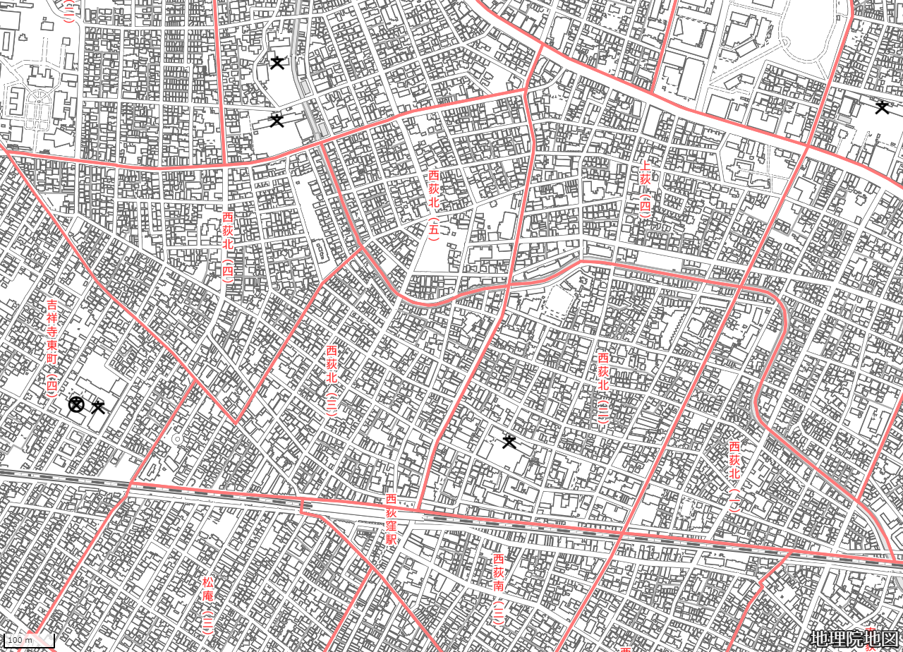 地図の内容は国土地理院が作成した時点の情報を反映しており、実際の現況とは異なる場合があります。現在は存在しない建物や道路、新たに整備された施設などが含まれることがありますので、あらかじめご了承ください。