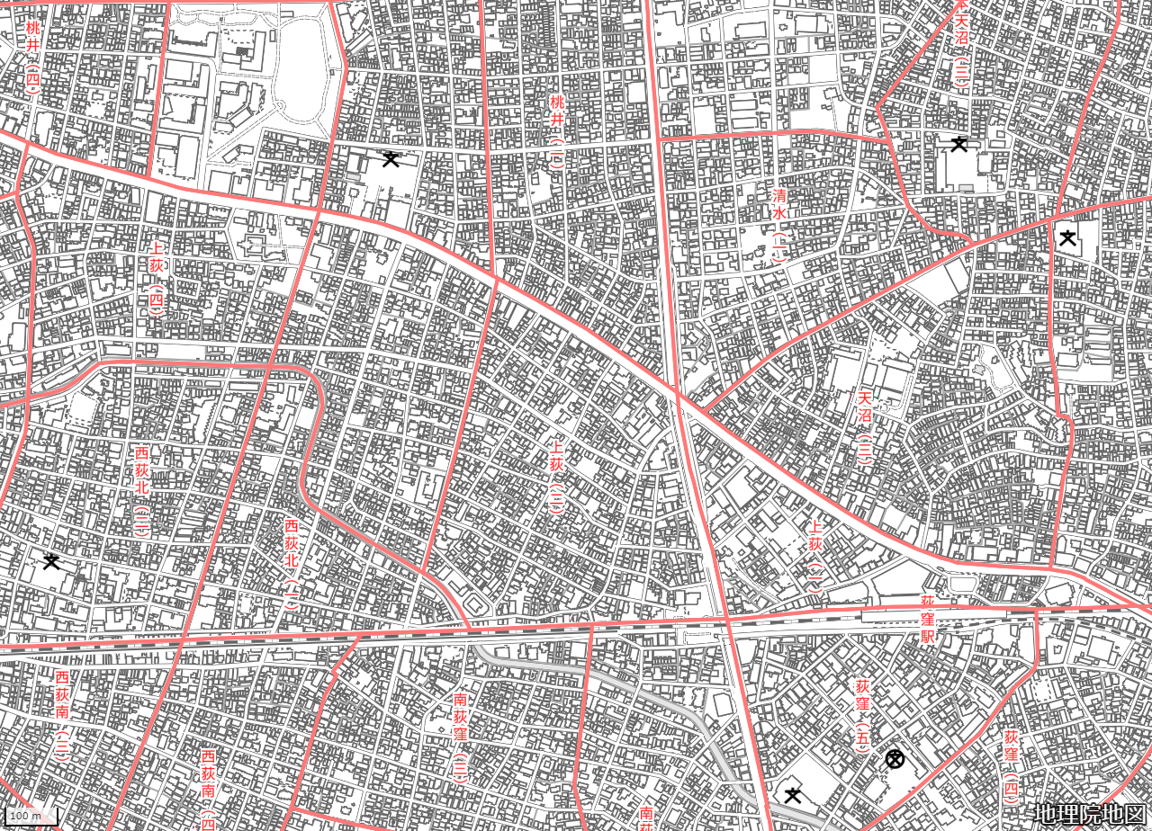 地図の内容は国土地理院が作成した時点の情報を反映しており、実際の現況とは異なる場合があります。現在は存在しない建物や道路、新たに整備された施設などが含まれることがありますので、あらかじめご了承ください。