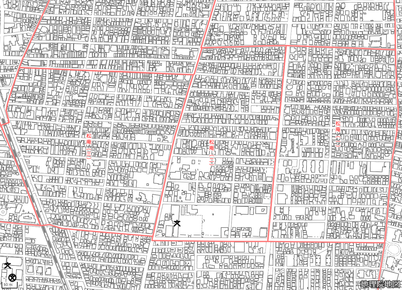 地図の内容は国土地理院が作成した時点の情報を反映しており、実際の現況とは異なる場合があります。現在は存在しない建物や道路、新たに整備された施設などが含まれることがありますので、あらかじめご了承ください。