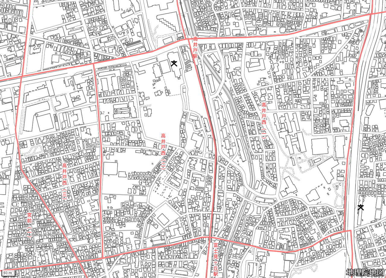 地図の内容は国土地理院が作成した時点の情報を反映しており、実際の現況とは異なる場合があります。現在は存在しない建物や道路、新たに整備された施設などが含まれることがありますので、あらかじめご了承ください。