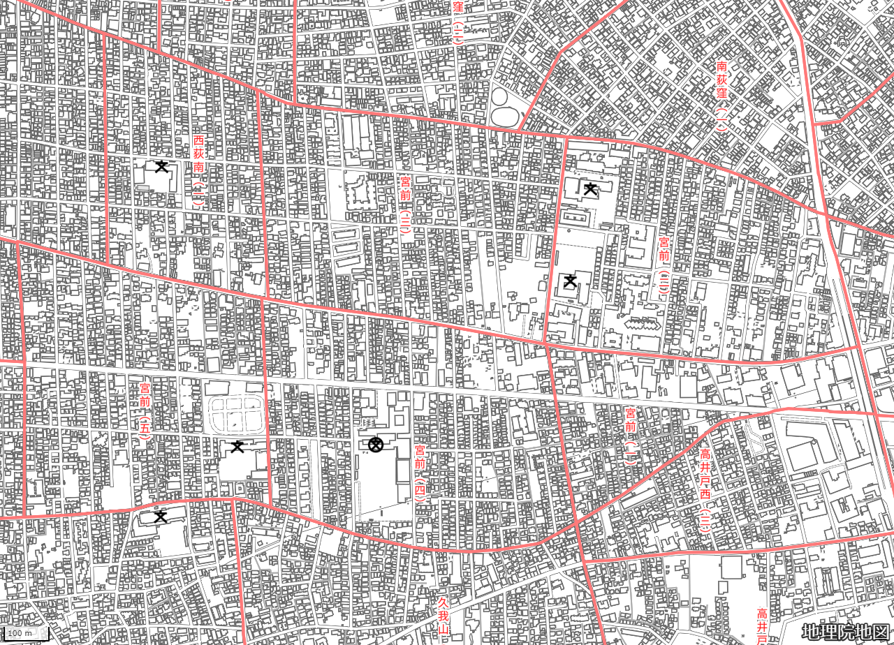 地図の内容は国土地理院が作成した時点の情報を反映しており、実際の現況とは異なる場合があります。現在は存在しない建物や道路、新たに整備された施設などが含まれることがありますので、あらかじめご了承ください。