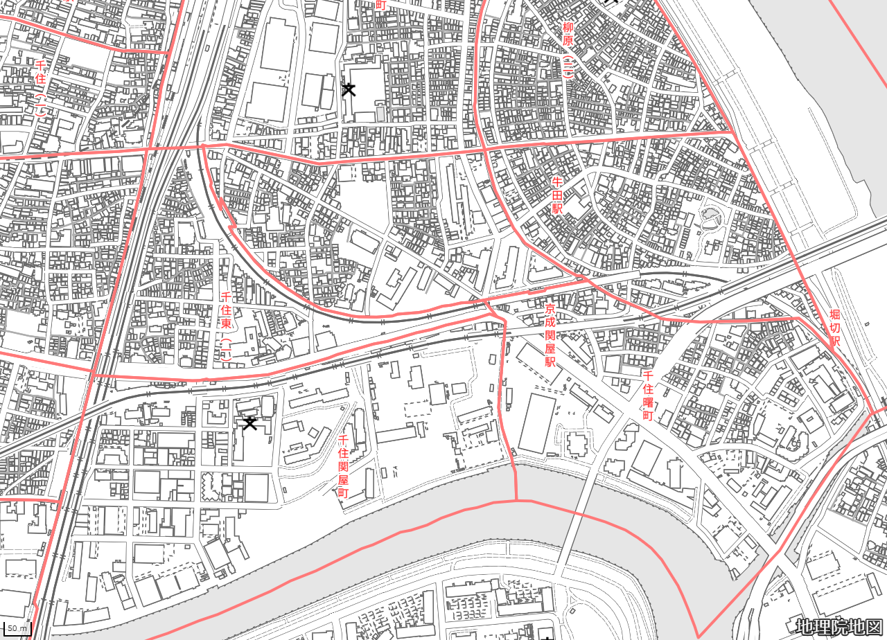 地図の内容は国土地理院が作成した時点の情報を反映しており、実際の現況とは異なる場合があります。現在は存在しない建物や道路、新たに整備された施設などが含まれることがありますので、あらかじめご了承ください。